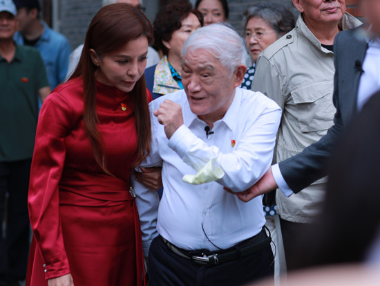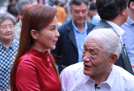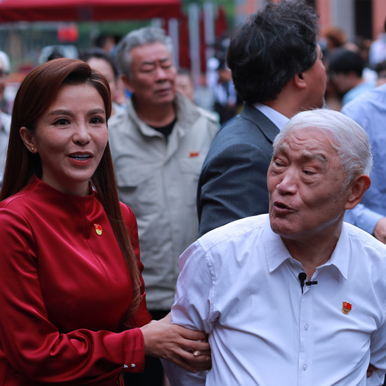 近日,有网友晒出了一组央视主持人朱迅的近照。照片中,朱迅长发披肩,穿着喜庆的红衣出镜,身材傲人。当日她虽然化了浓妆,但面部表情有些僵硬满眼皱纹明显。与其同行的还有87岁的老艺术家牛犇,朱迅全程搀扶着牛犇老师,十分尊敬。
