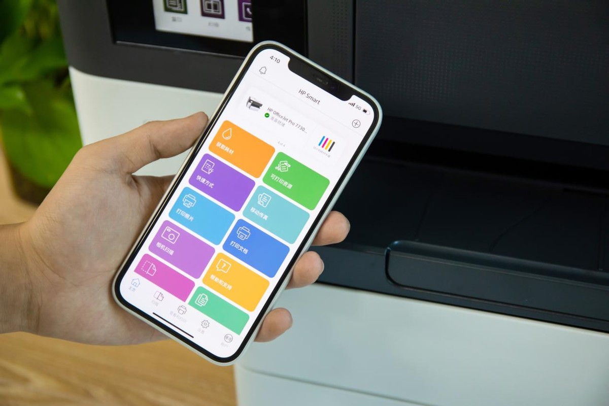 在应用层面,加持了无线网络功能的惠普7730,只需要下载安装HP Smart智能应用就可以使用手机进行打印、扫描操作,做到随时随地打印,不受线缆的约束,开启移动办公新篇章。
