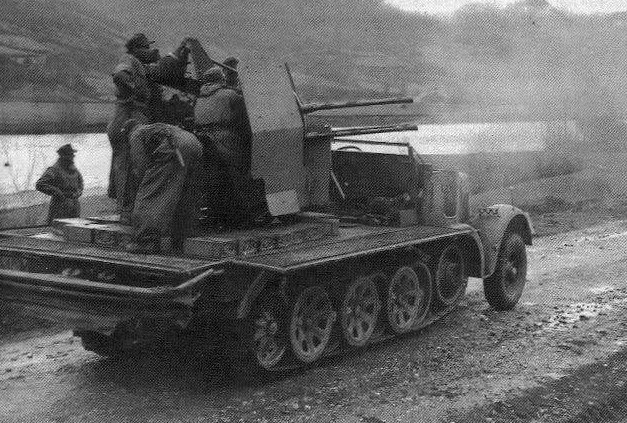 机械化防空连:它里头分4个排,其中两个排各装备4挺半履带车拉的20mm单管防空炮,另外两个排各装备一门4管20mm防空炮(一门车载,一门牵引)