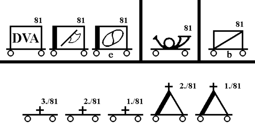 下面这个是一堆支援单位,DVA,斧子,面包这三就是小卖部和食材采购加工部门,那个被一粒蛋压弯的喇叭花是邮局,斜条盒子是宪兵,十字架+滑板是三个救护车队,三角形+十字架+滑板是野战医院。