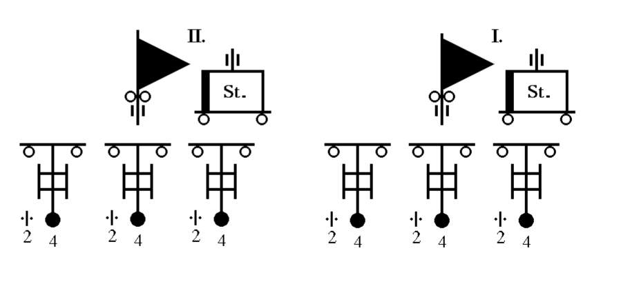 团部这个st.代表机械化总部连,里头主要是通讯人员,粪叉一样的符号依旧是军乐队。