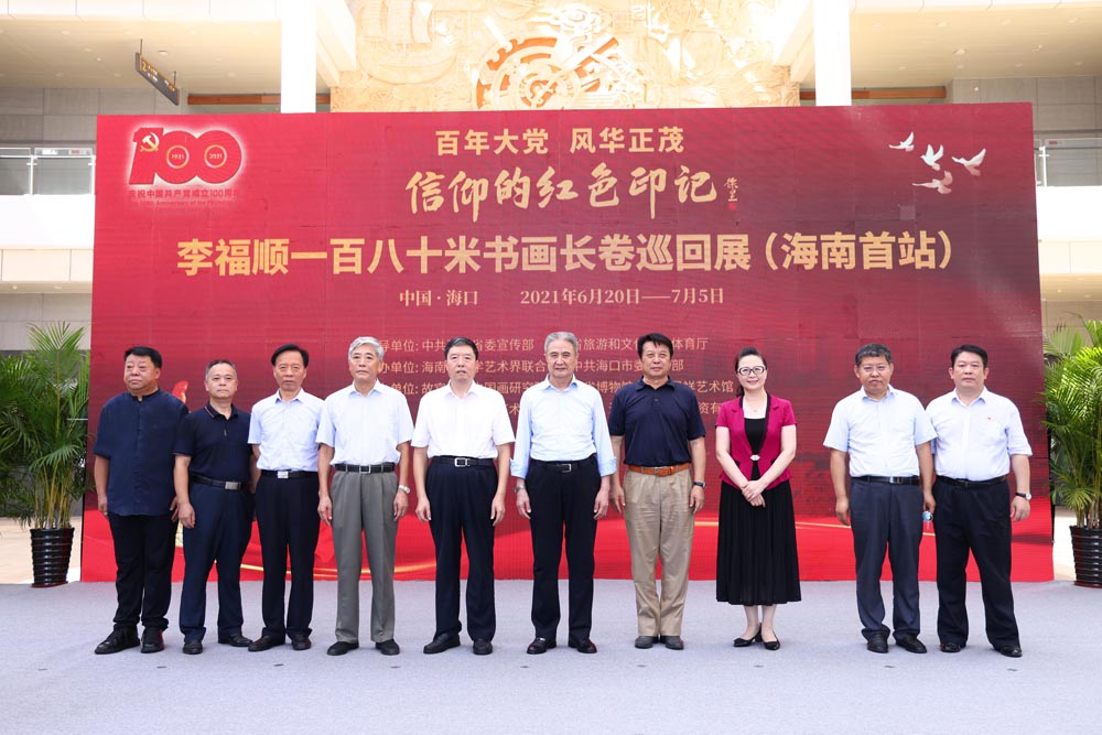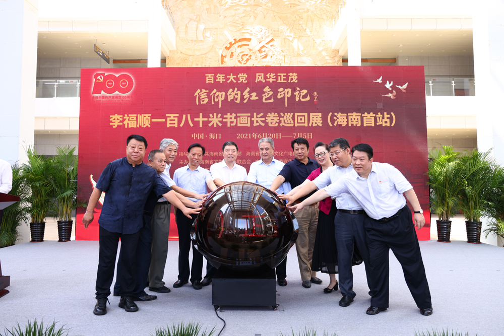 6月20日,“百年大党 风华正茂”《信仰的红色印记》百米书画长卷巡回展(海南首站)在海南省博物馆举行开展仪式。