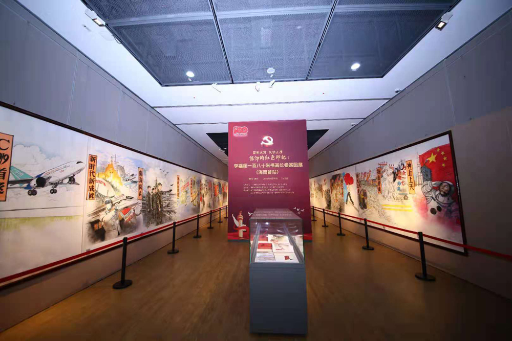 《信仰的红色印记》李福顺一百八十米书画长卷巡回展是海南省庆祝中国共产党建党100周年重点项目之一。长卷用艺术的形式阐述了中国共产党建党百年来的光辉历程和远大前景,生动展现了中国共产党建党100周年来发生的一些重大事件,涉及政治、经济、社会、文化、生态、国防、外交、统战、党建等领域,既融为一体又相对独立,为开展党史学习教育提供了生动教材。