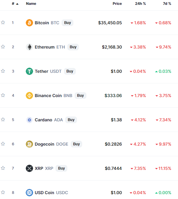 截止发稿,加密货币依然全线走跌,比特币 7 天内所有涨幅完全抹平。