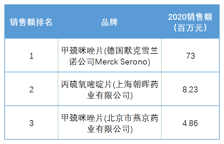 抗甲状腺药物-零售终端品牌销售情况(2020年)