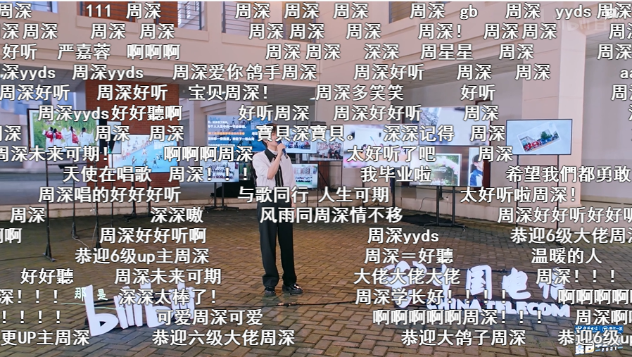 最绝的是,周深旁边还有好几个屏幕,里面全是毕业生的寄语弹幕,给人看得更加感动了!深深子说的没错:“很多人回忆到青春总是后悔”,大家伙儿可一定要珍惜时间,勇敢冲就完了!
