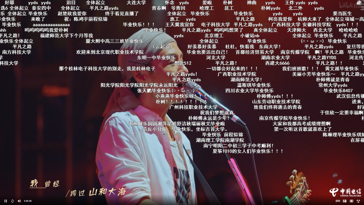 朴树老师也是合唱高手!一句“大家跟着一起唱”瞬间点燃整个场子,《平凡之路》前奏一响底下同学就开始尖叫、呼喊.....那场面比大伙儿合唱《难忘今宵》还壮观,via~via~直接via的我跳起来大喊“我曾经跨过山河大海!!”那一嗓子估计朴树老师当时在我面前,都能把吉他吓掉~等最后一首歌结束后,朴树老师微微鞠躬,转身潇洒离去,只留下屏幕前的我,陷入山海之中久久不能忘怀.....