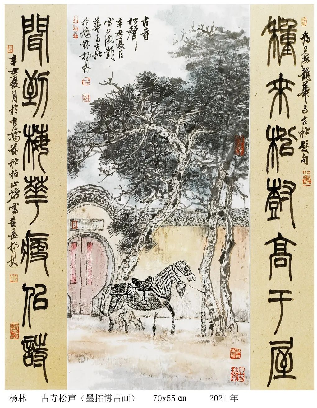 如今,画家画松,就是画文人之心。而松图也蕴含了更多的人文含义,甚至包括消灾挡灾。这些从山中来到寺院的古松,恰好与佛家普渡众生的思想颇相吻合,也成为它们最后的精神家园。
