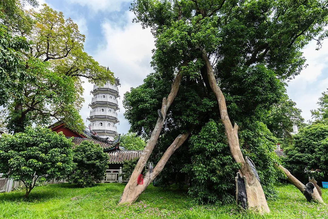 这棵树大概也是寓意着,六祖文化作为中华优秀传统文化的重要组成部分,虽然历经了经沧,但仍然富有生命力,并且源远流长吧。