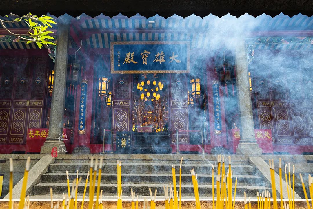 走在寺内,绿树掩映,能闻得到空气中散落的香火气息。袅袅佛香,将建筑都染上了一层浅浅的青色。