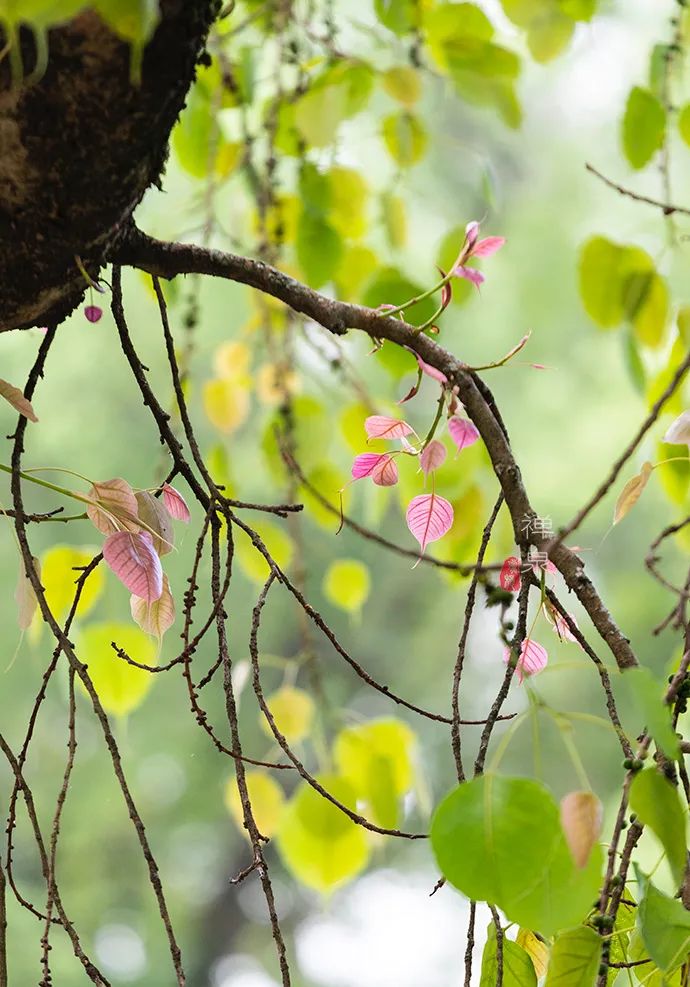 国恩寺内随处可见菩提树,大约是因为六祖惠能和菩提的缘分吧。新生的菩提叶粉粉嫩嫩,象征新生的希望。