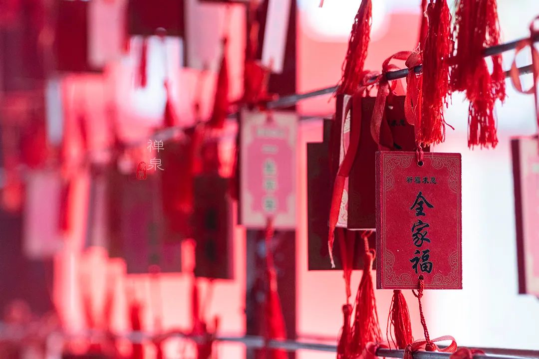 而无论是大气磅礴的殿堂、幽幽独辟的长廊、还是郁郁葱葱的绿树、随风飘舞的丝带,没有一处不让你觉得沐浴在佛光之中,眼下无尘,内心都安宁了几分。