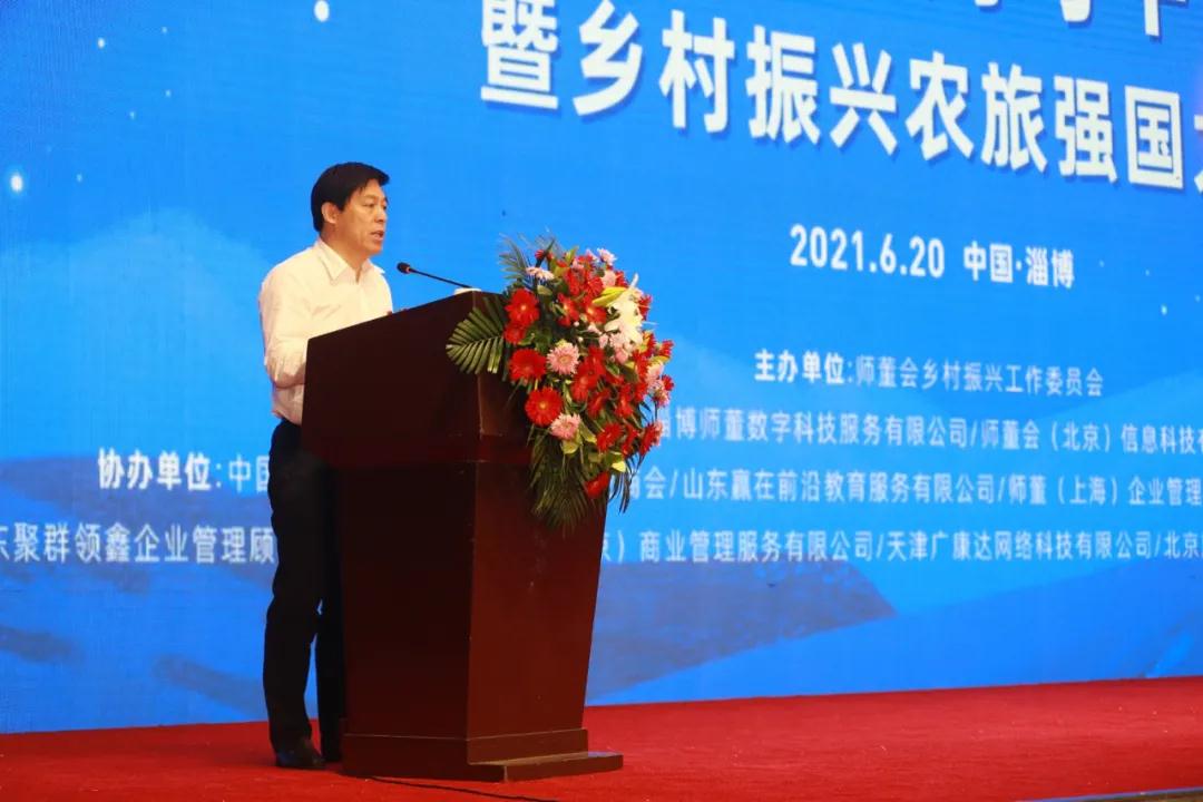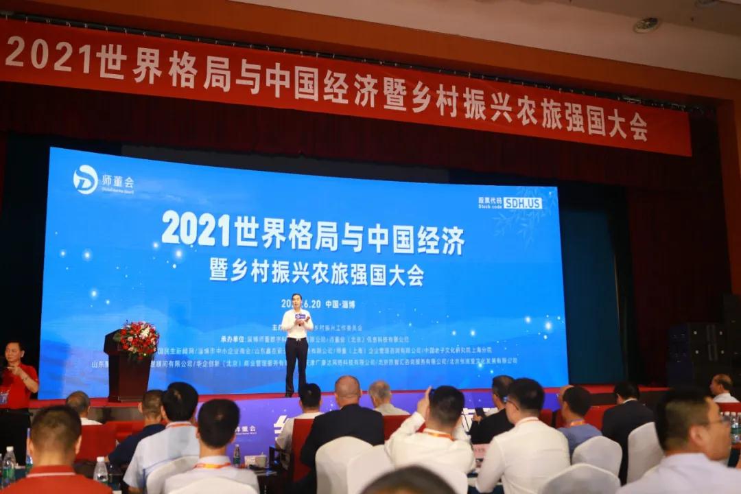 6月20日,由师董会主办的“2021世界格局与中国经济暨乡村振兴农旅强国大会”在淄博蓝海大酒店举办,共有来自全国各地的300多位政府领导和企业家参加了本次论坛。农业部原副部长、民建中央副主席路明,淄博市委常委、副市长宋振波参加了论坛开幕式并致辞。住建部村镇司原司长李兵弟,师董会董事长胡海平,北京大学城市发展与规划研究所所长高志,CCTV-2《魅力中国城》执行制片人、盈科旅游总裁何宁宁等嘉宾出席论坛并发表演讲。淄博市财政局局长王连忠、淄博市农业农村局副局长张方孝、淄博市博山区人社局局长于芳文、井冈山金融投资中心常务副主任王智轩、淄博市财政局一级调研员焦刚等领导以及中国自贸区联盟数字经济研究院副院长刘恺、淄博市中小企业商会会长毕思河、中国商业文化研究会文化旅游分会执行会长庄会明、中国国际科技促进会创新工作委员会主任李静、淄博市科技绿色产业协会会长叶元礼、山东儒商促进会副会长王吉庆等业界人士共同参加了本次会议。