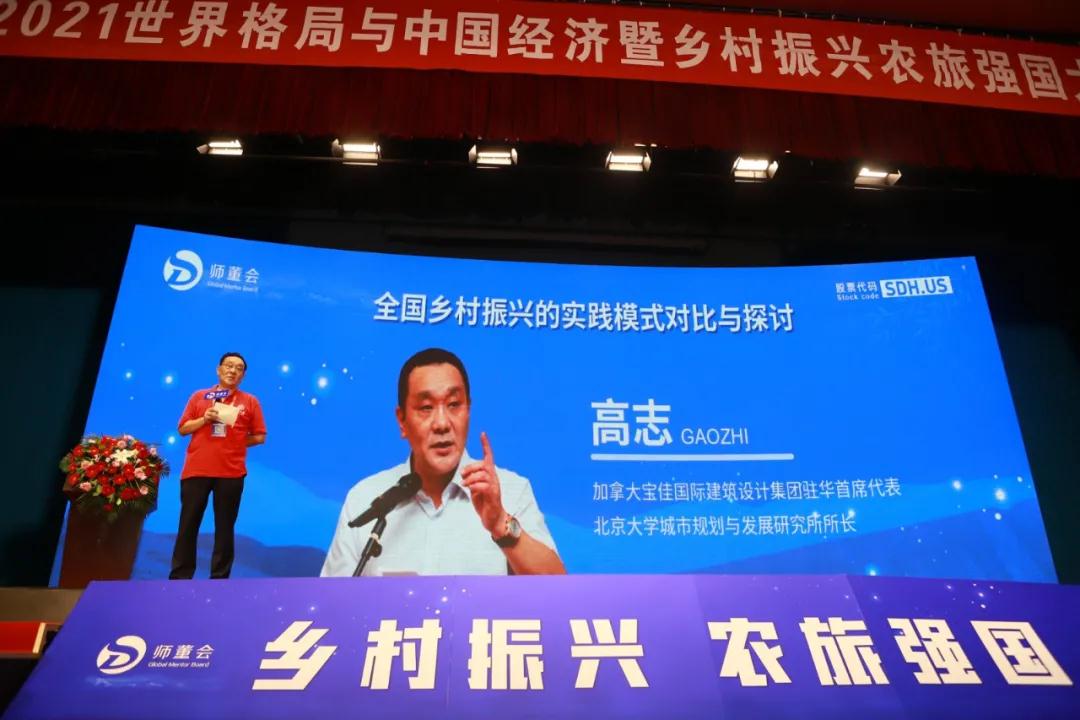 下午,宝佳国际建筑设计集团驻华首席代表、北京大学城市发展与规划研究所所长高志分享了《中国乡村振兴的实践模式对比与探讨》主题演讲,演讲中对乡村经济发展所面临的现状与发展策略进行了分析。高志对于师董会胡海平董事长提出的“抱团上市”与“海外上市”的发展策略非常赞赏,认为通过智慧赋能、智慧孵化,提升乡镇企业经营水平和融资格局,借力全球资本拉动中国乡村企业的快速发展是当前国际投资和经济环境下,最为适合中国企业快速发展的思路。企业想要做大,不仅要借力先进智慧做强,更要借用全球资本做大。