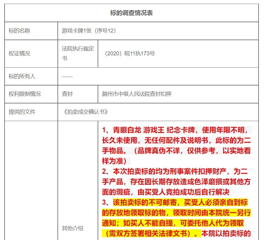 据悉这张“青眼白龙”20 周年纪念版纯金卡牌于 2019 年发售,官方定价 20 万日元,全球限量发售 500 套。而此次的拍品由于使用年限不明、长久未使用等无法验证真伪的原因,导致评估价只有100元,而参与拍卖的保证金同样为100元。