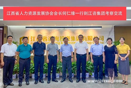 6月18日上午,江西省人力资源发展协会会长何仁缘在协会秘书长韩林平等陪同下,到江西省咨询投资集团有限公司(以下简称“江咨集团”)考察交流。江咨集团党委书记、董事长余铁根和集团领导张军、姚爱民、曾晓明等参加座谈。
