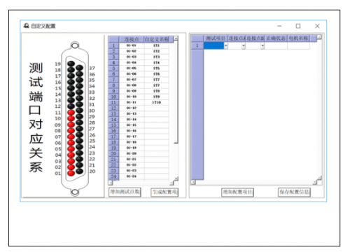 用户通过人机交互界面程序进行自定义命名配置点,自由搭配测试点的类型,自由搭配测试点组合,生成标准的测试配置点文件。并带有自学习功能,快速检测未知线束的连接关系及精确电阻。完成自学习测试后可根据第一次测试点数调整被测目标线缆,进行对比测试,同时保存对比结果。