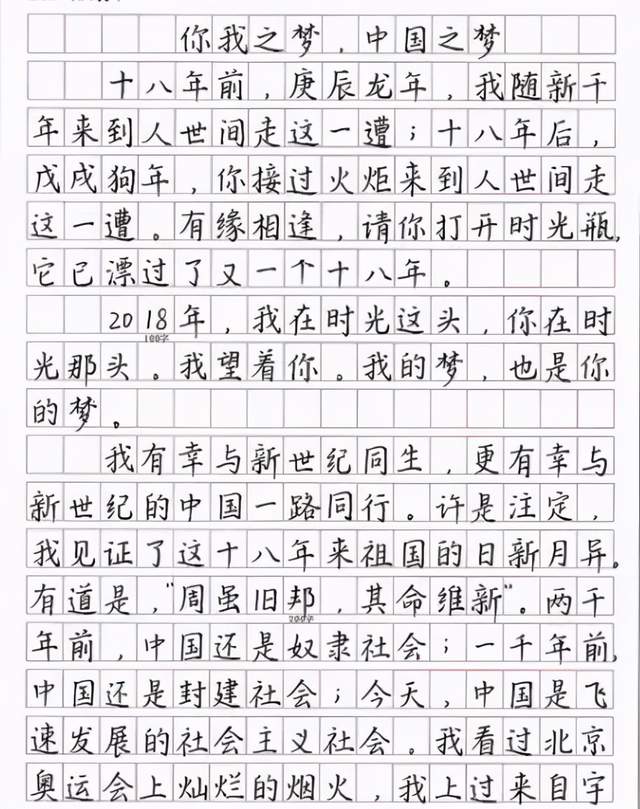 深圳中学的温卓越同学,曾在高考中,凭借字迹工整、文笔出彩,写下的一篇高考作文,不仅获得了满分,还入围广东省教育考试院2018年7篇高考作文名单中。