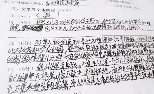 文文爸有个好朋友,曾参加过高考语文阅卷工作,据他而言:一份卷子在他们的眼皮底下基本只停留3-5分钟,其中作文会占去1-2分钟,而面对那些“看不清”、“认不到”的字,不管对错,基本就算“错”,不会给分了。