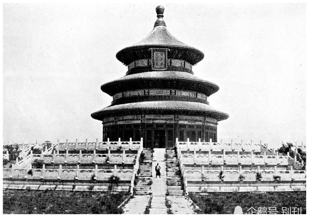 清朝时期的天坛没有今天那么收拾的大气上档次,由于各种原因也没有人维护和修缮,在当时也没有旅游概念,人们也没有意识要到天坛玩一玩的想法!但是图片中间了那位不明身份的男子看着也好像很享受美景的感觉!