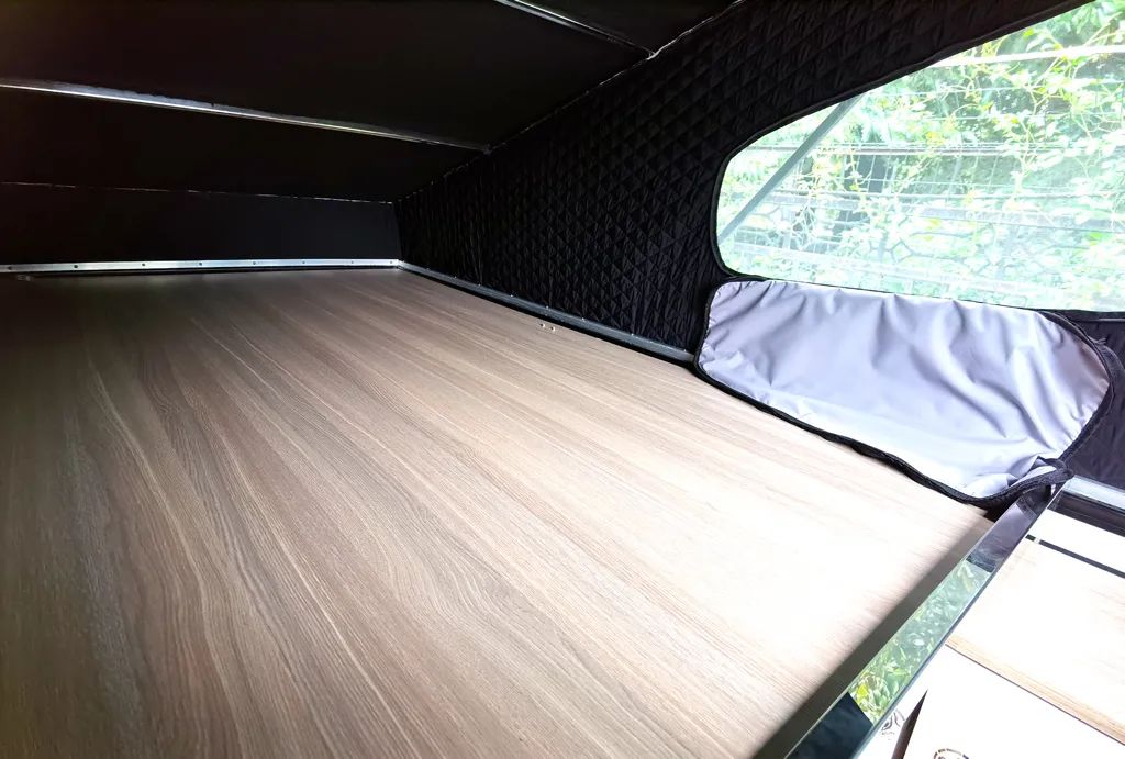 升顶之后的床铺尺寸为2200×1100mm。车尾部上掀门的设计配合户外遮阳棚在驻车时可以为大家营造更大的休憩空间。