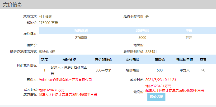 该楼面价也跻身佛山排行榜第2,南海排行榜第1!