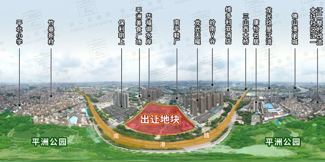 从地理位置看,地块位于桂城平洲板块,龙光天曜西侧,保利玥上东侧,南朝平洲公园,北邻华福御水岸,位置优越,与广州荔湾区仅一河之隔。