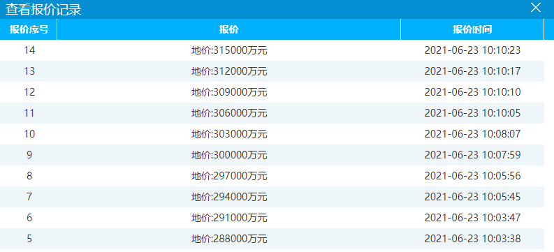 10:10 报价来到第14轮,楼面价已超2.1万元/㎡。