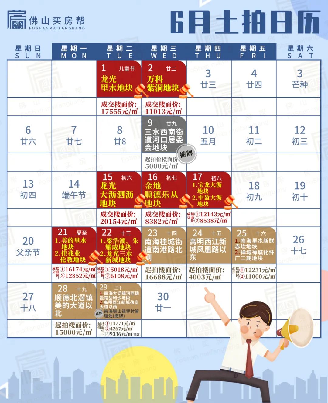 此宗地后,6月只剩最后6宗土地拍卖(南海狮山罗村管理处地块已撤牌)。