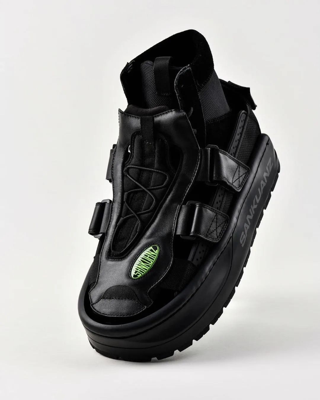 上师之前大热的鞋套鞋也使用了黑皮质为基底加上绿色小标点缀