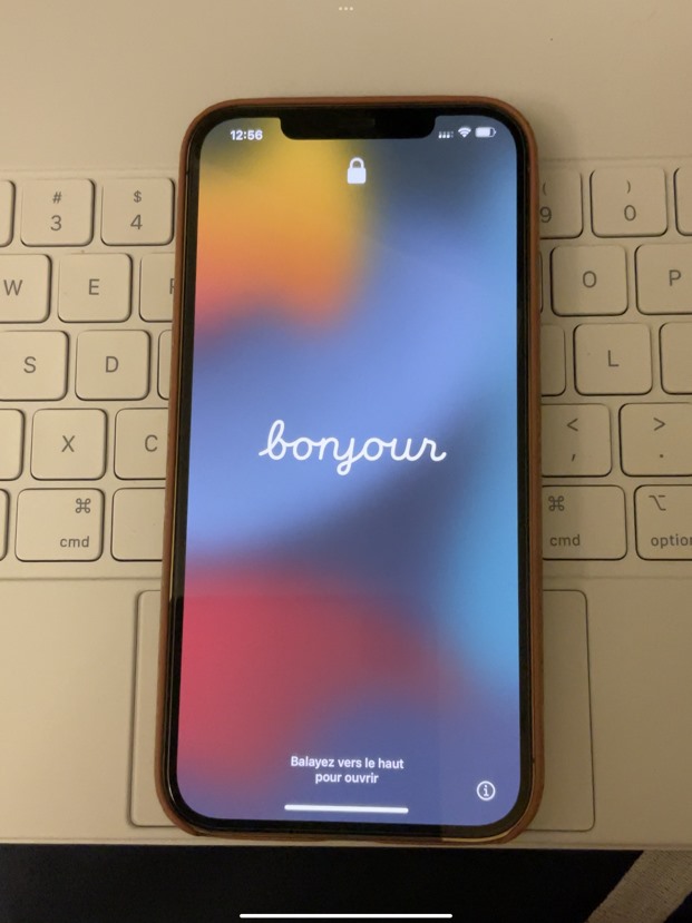 从图中可以看出,iOS 15 的激活界面采用了新 24 英寸 iMac 的手写体设计语言,背景方面取消纯白或者纯黑设计,采用内置默认壁纸 + 毛玻璃效果。