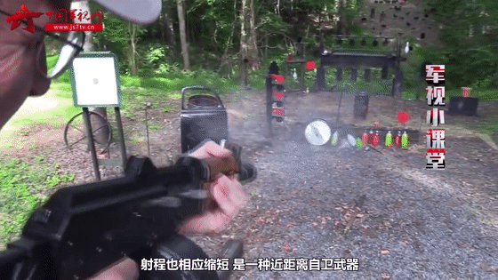 AKS-74U典型的特征就是枪管短,因此枪口初速也降低了,射程也相应缩短,是一种近距离自卫武器。
