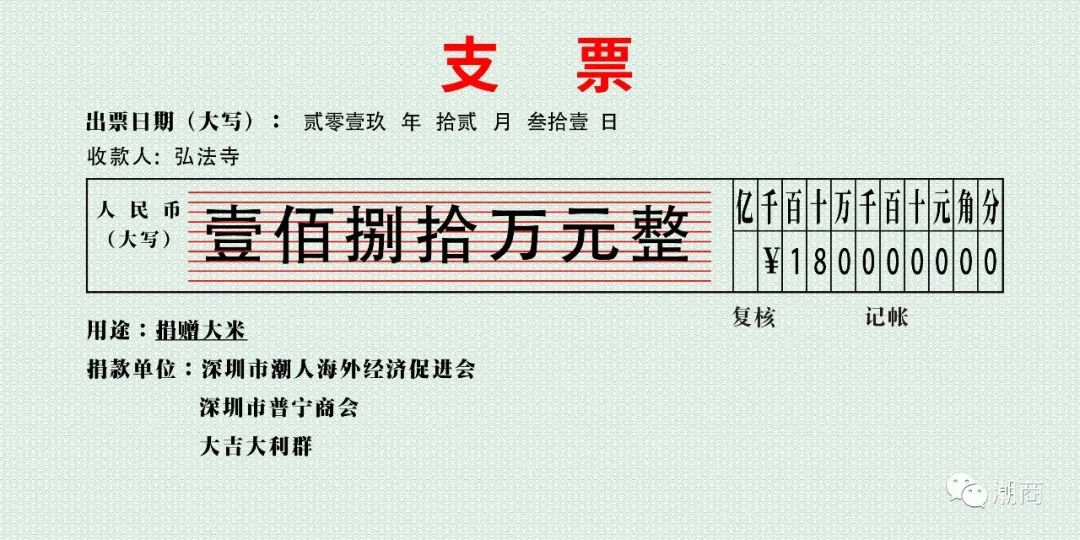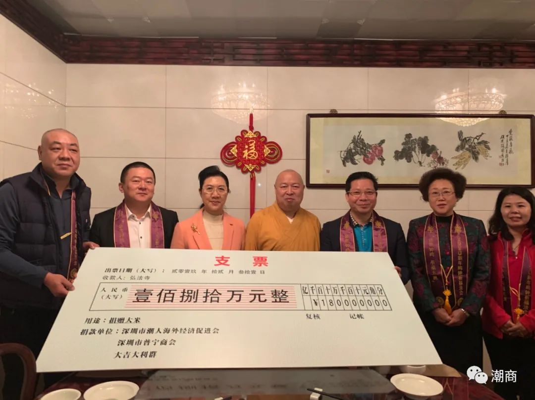 2019年12月31日,陈健辉组织大家捐赠善款共计人民币180万元,给弘法寺。