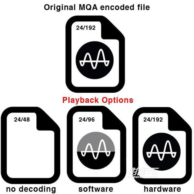 刚才说到,MQA编码处理方式的目的是为了进一步缩小文件体积的前提下保证音质,它的理念可以理解为将一个高格式音乐24bit/88.2KHz(96kHz)更高的装入一个较低规格的文件里面。我们现在能够获取到的MQA编码音乐的数字规格有24bit/44.1kHz(48kHz)及16bit/44.1kHz(MQA CD唱片)。当回放时实际上需要通过MQA CoreDecoder(核心解码)+ MQA Rerender(渲染器)两部分来完成(合起来是MQA Full Decode)。假设我们需要播放一个最高能还原24bit/176.4kHz的 MQA 24bit/44.1kHz的文件。那么MQA CoreDecoder最高只能到达24bit/88.2KHz,再加上MQA Rerender之后才能变成24bit/176.4kHz!那到底怎么实现?