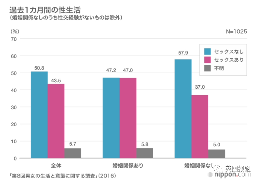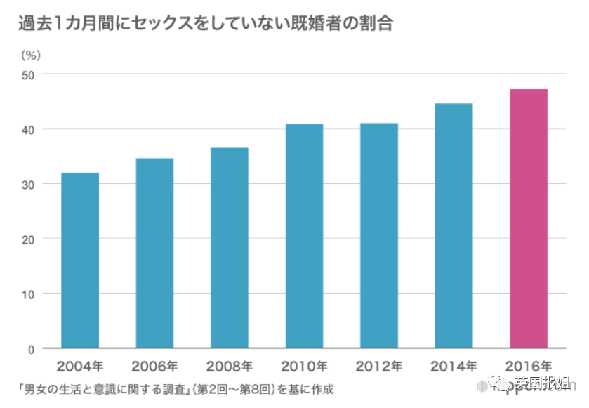日本家庭计划协会2016年的统计表示,“无性婚姻”的比例占到了47.2%:接近一半的夫妻在过去的一个月内没有性生活。