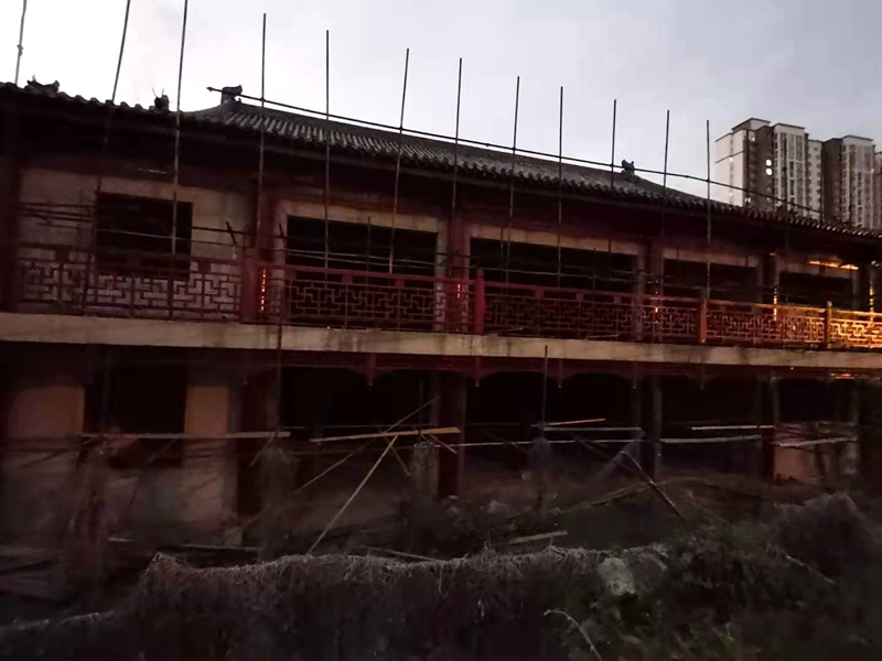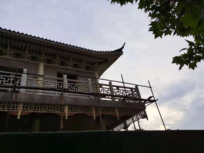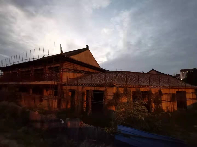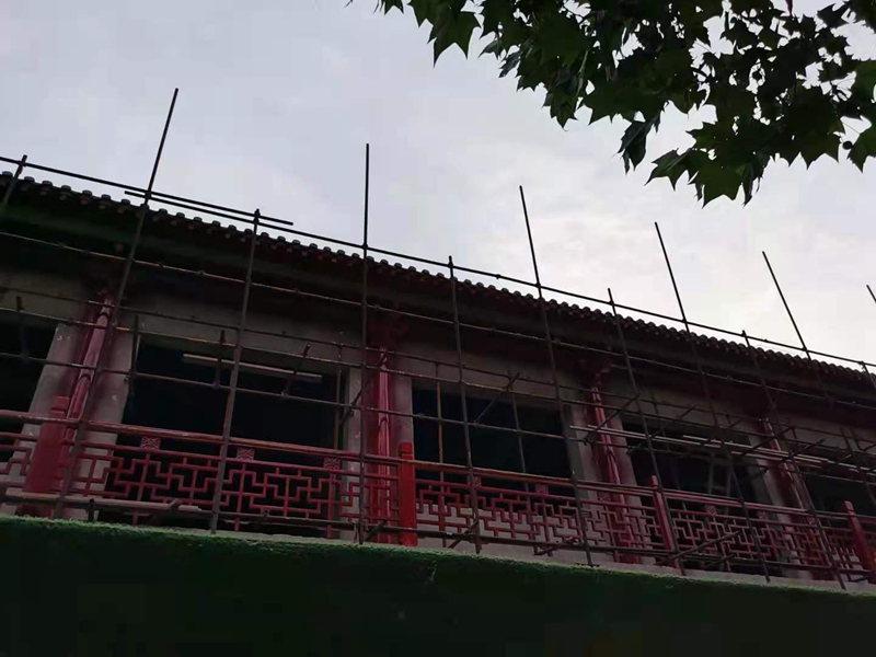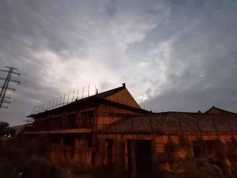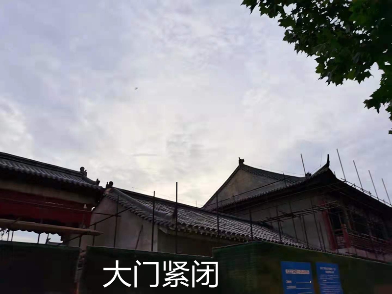2021年6月23日下午,笔者再次经过该处时,突然发现这些古建筑群中一些主建筑前搭起了脚手架,想必是正在进行维修,那里面肯定有人了。于是就没有叫停自己的脚步,径直朝大门走了过去。
