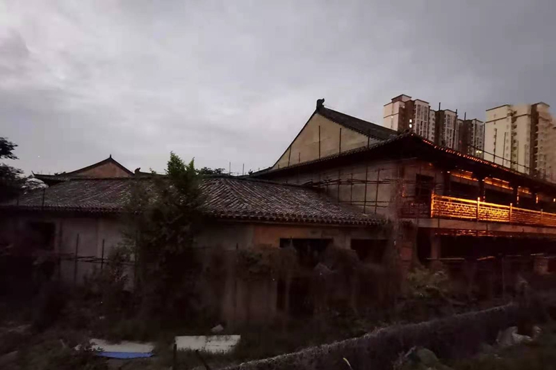这些古建筑群层层叠叠,错落有致。从远处看恢弘气魄,青砖碧瓦之间,雕梁画栋,很像是一处古代的大型庙宇所在。走近了,却因为围挡有两米多高,只能向上眺望这些古建筑的飞檐走壁,而无法窥视其内部风貌。