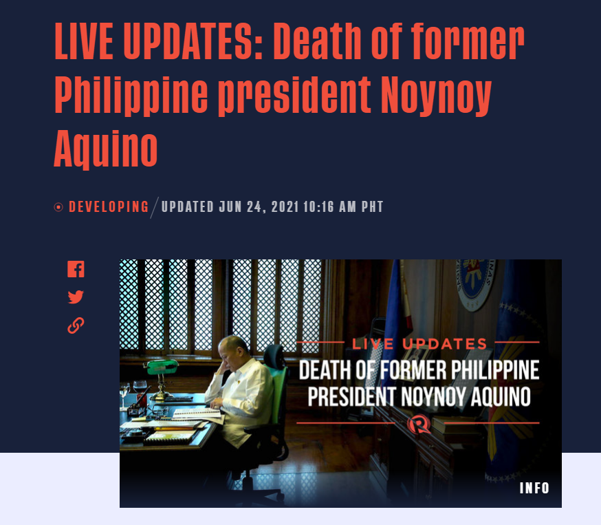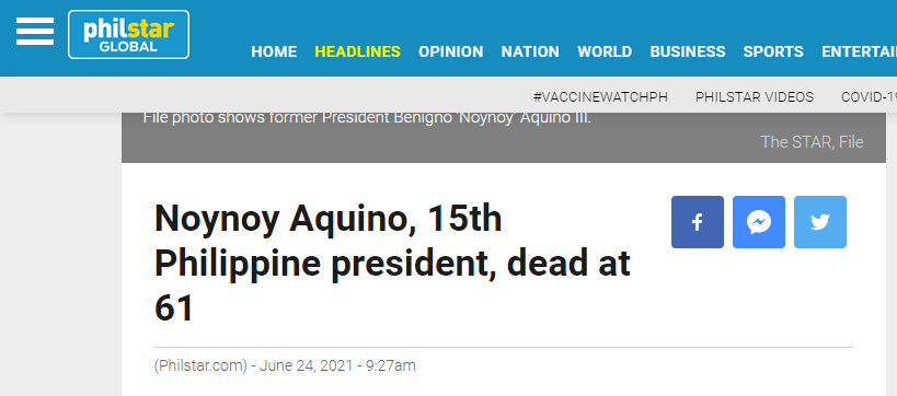 按照菲律宾媒体的报道,阿基诺三世今天(24日)上午被紧急送往医院,但最终因心力衰竭去世,终年61岁。