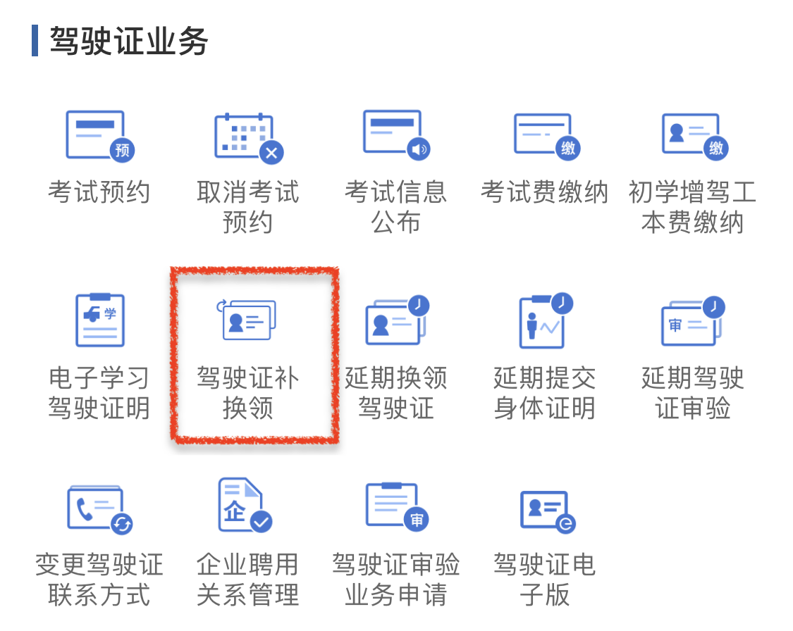 选择“更多”➡ 进入“驾驶证业务”➡ 选择“驾驶证补换领”