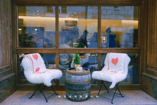 咖啡馆门口的两把一起,放了厚厚的毛垫子和毛毯,完美诠释冬天再冷也要坐在室外喝咖啡的生活习惯。