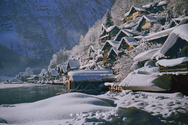 当晚,该地区暴雪,次日我们再去哈尔施塔特,大约是大雪挡住了旅行团的脚步,小镇重归宁静,小木屋的斜顶被厚厚的雪覆盖,像一朵朵蘑菇绽放,确实很童话。