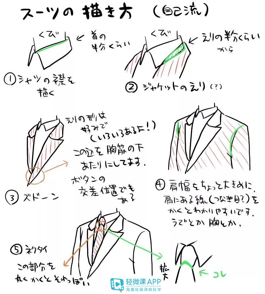 其次,我们一起来看看绘制西装需要注意什么: