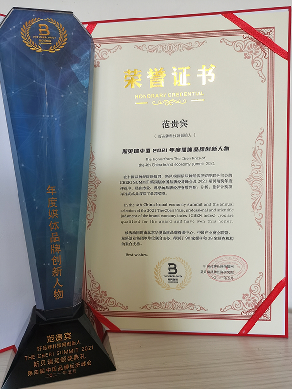 好品牌科技网创始人范贵宾荣获“2021年度媒体品牌创新人物”奖