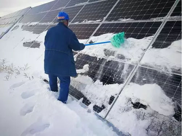 光伏板遇暴风雪覆盖,严重影响发电量