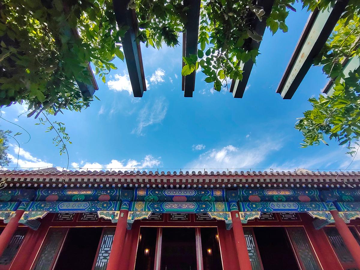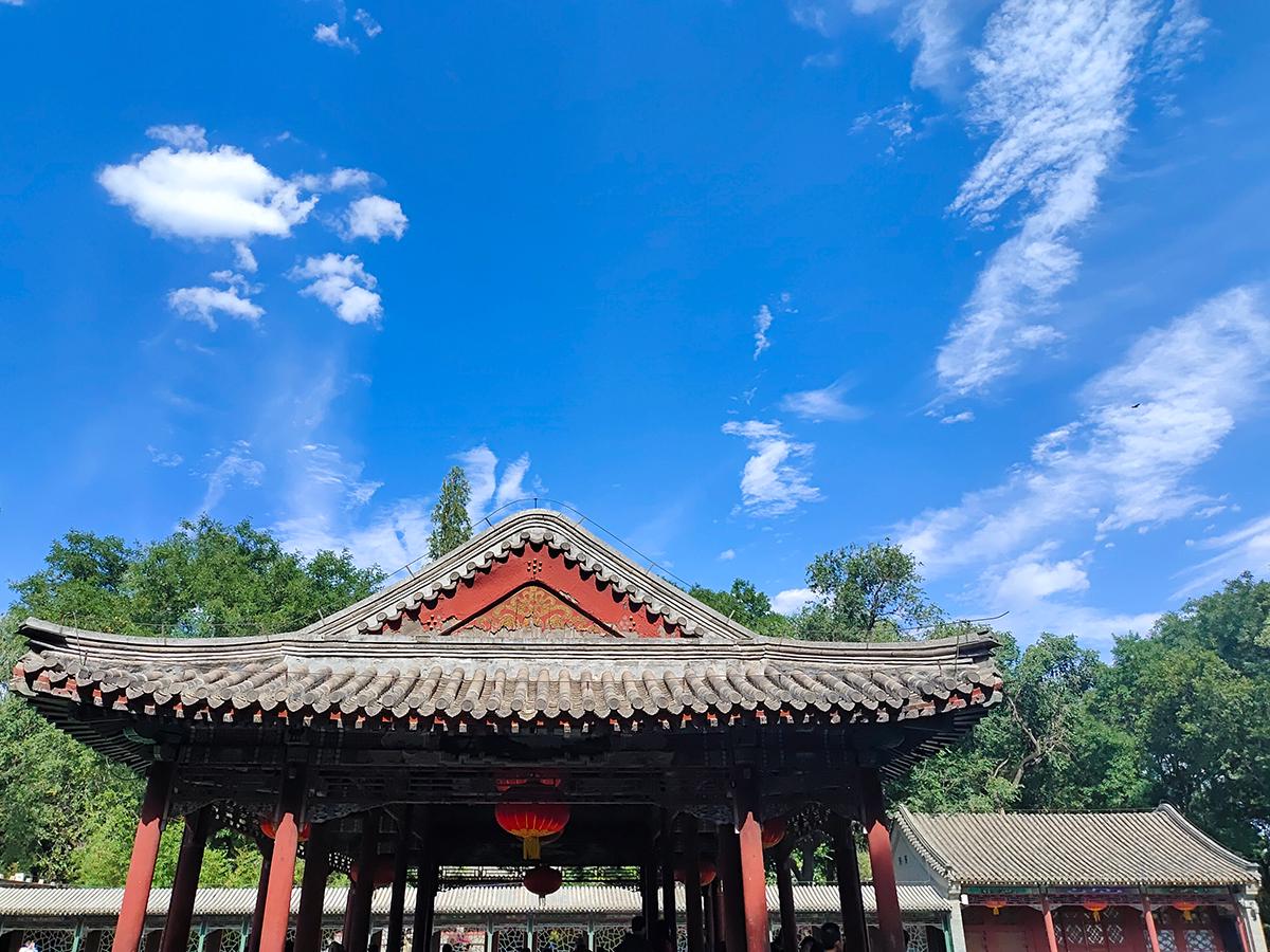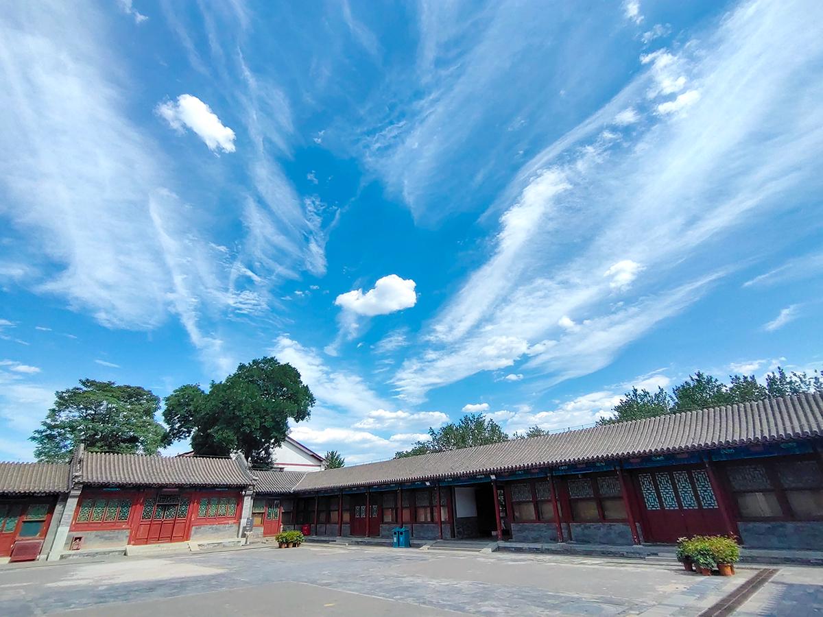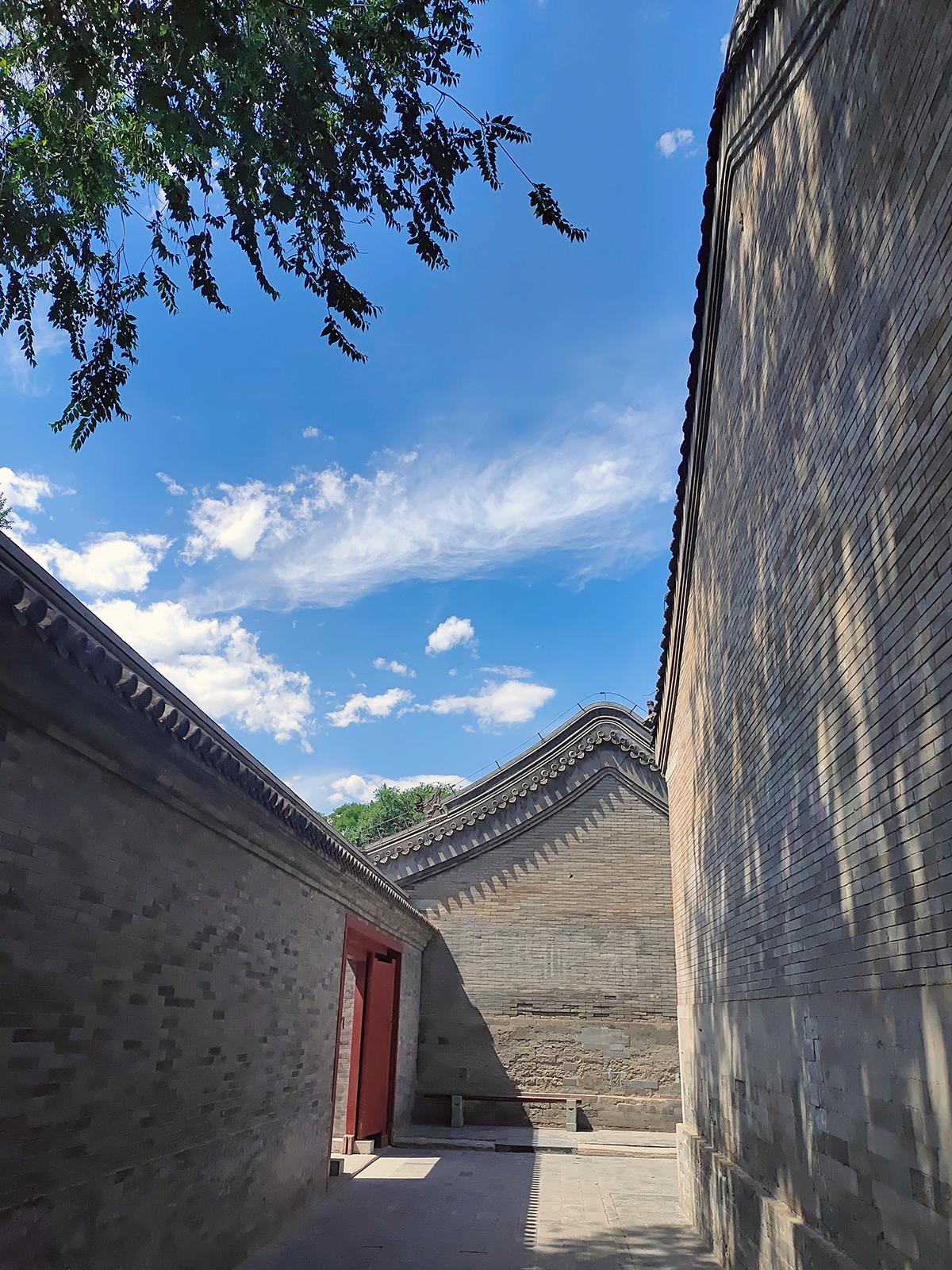 空旷的院落加持给力的蓝天白云,配合手机的广角拍摄,不知道你是否也喜欢此类拍摄手法?