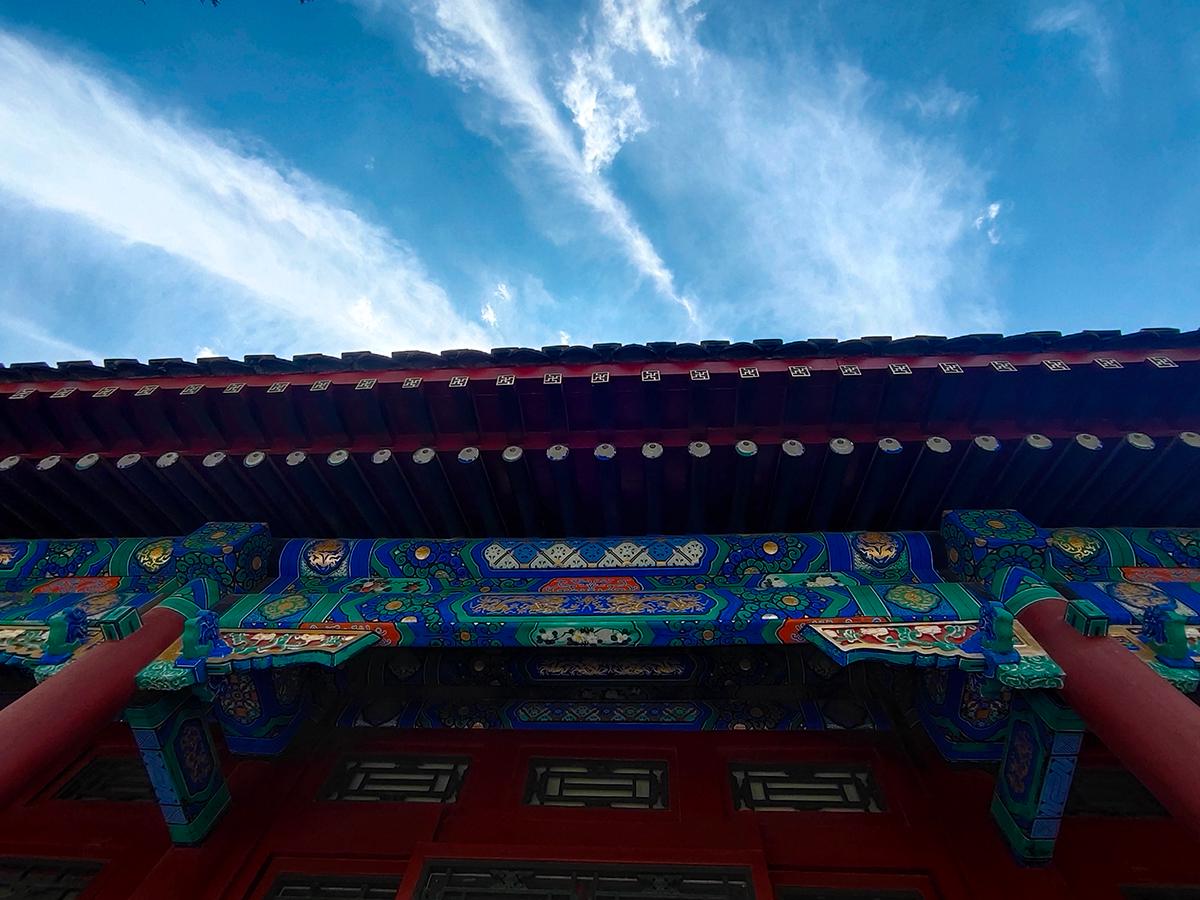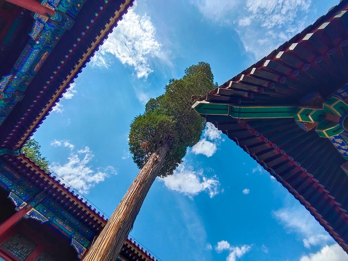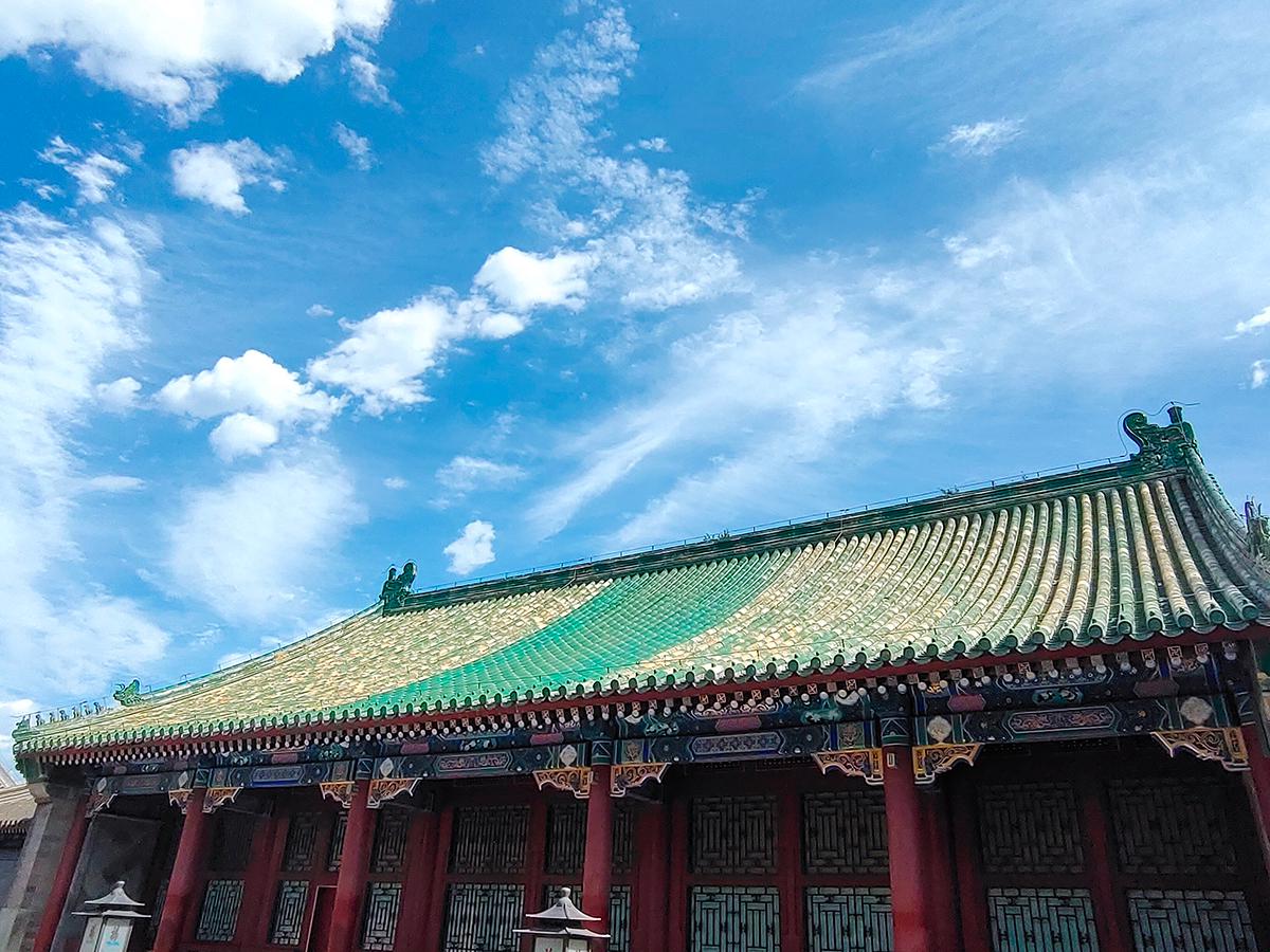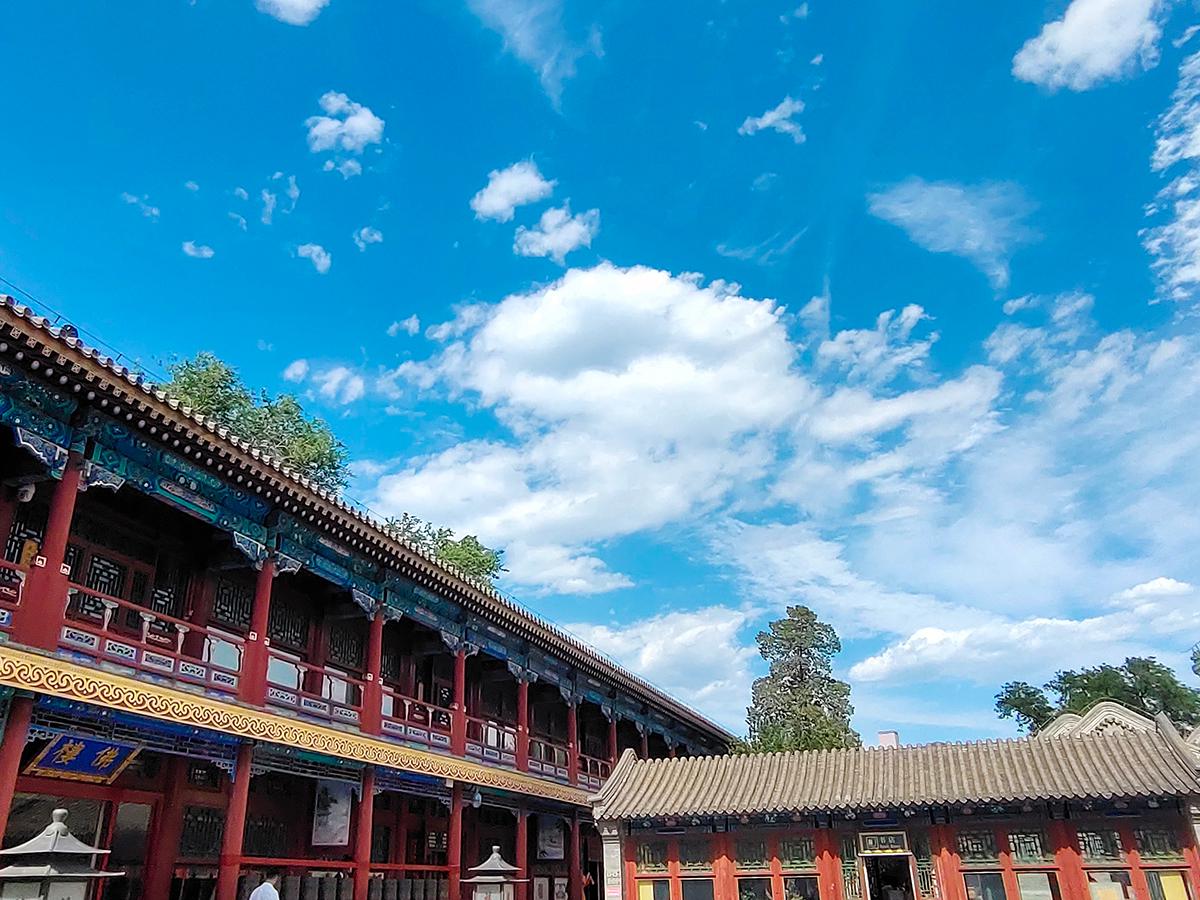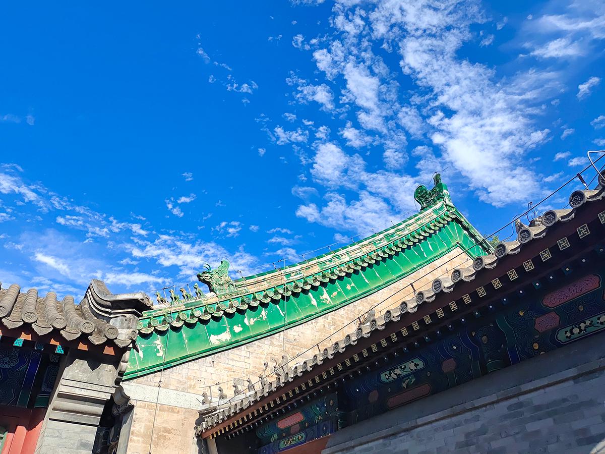空旷的院落加持给力的蓝天白云,配合手机的广角拍摄,不知道你是否也喜欢此类拍摄手法?