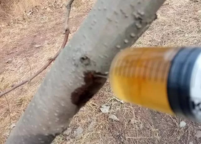 4、糖醋液诱杀:桃红颈天牛成虫对糖醋有趋性,用糖5份,醋20份,白酒2份,水80份,将糖和水溶化在一起加热至沸,待糖液冷却后,再加上醋和酒混匀备用。6月上旬成虫羽化期,将制好的糖醋液倒入容器中(倒1/3即可),悬挂于行间树荫下,距地面1.5米高,3-5天加一次液体。