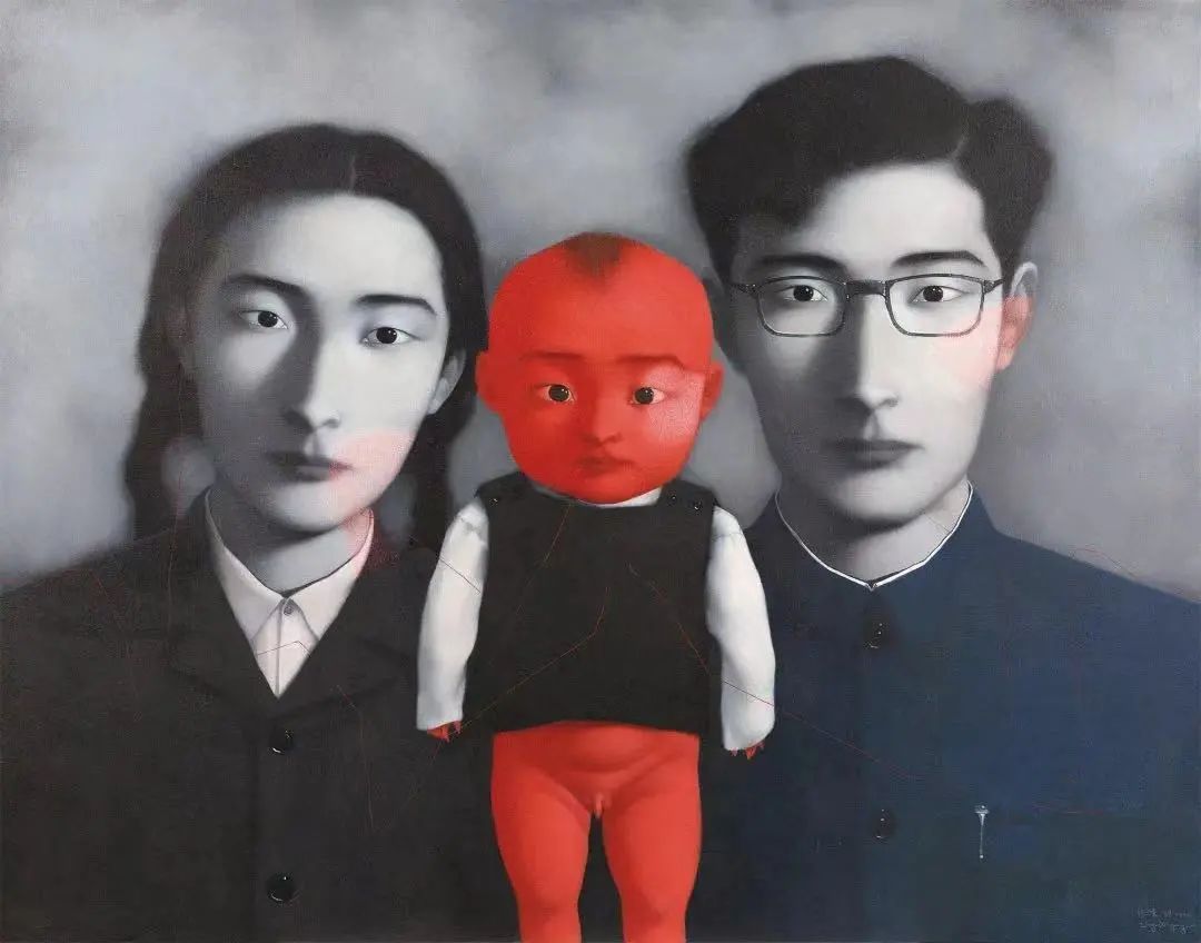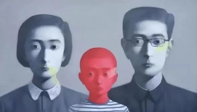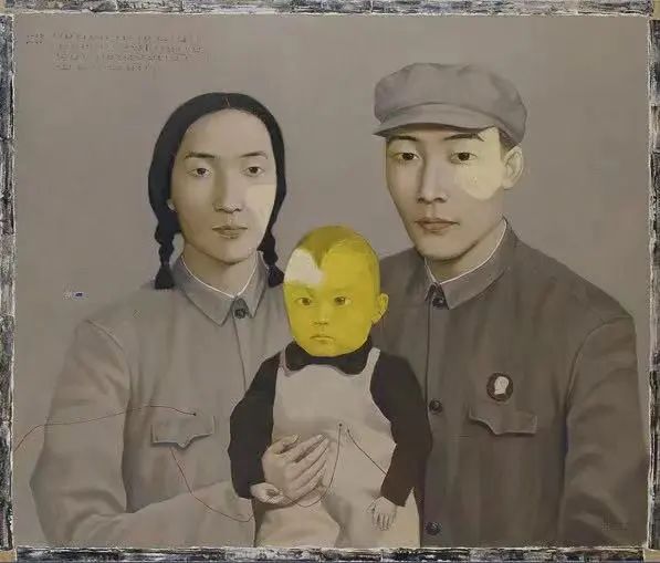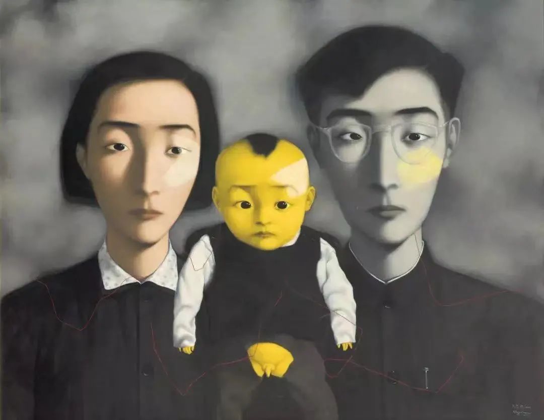 张晓刚广为人知的是他的代表作——《大家庭》系列作品。他的创作灵感来自于过去几十年前,那些黑白或者彩色老照片的全家福,作品的名称都叫做《大家庭系列》。