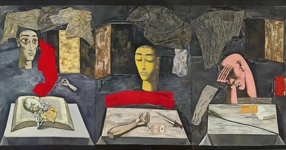 张晓刚《黑色三部曲 :惊恐、沉思、忧郁》