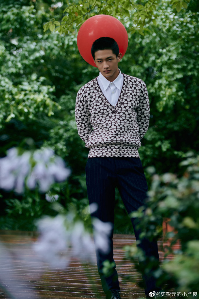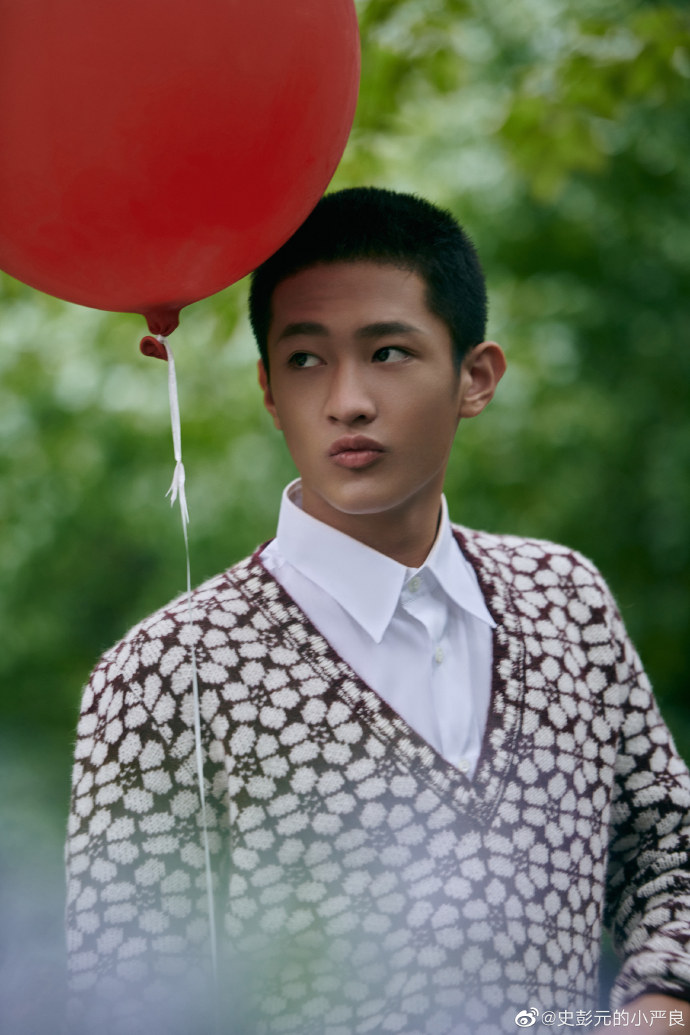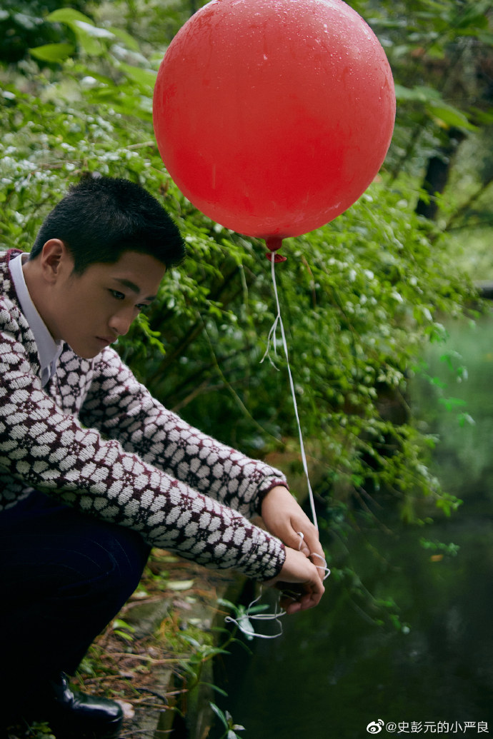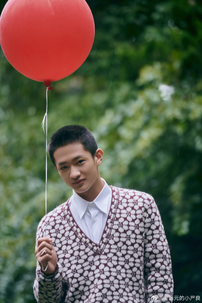 照片中,史彭元白衬衫搭配印花毛衣,手执一只红色气球,简单硬朗的寸头,高挑的身形,颇具反差感的穿搭,惹得网友纷纷评论:“弟弟有在好好长大!”“寸头太A了” “弟弟好会拍,氛围感有“